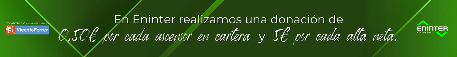 Como parte de nuestro compromiso, en Eninter realizamos una donación de 0,50€ por cada ascensor en cartera y 5€ por cada alta neta.