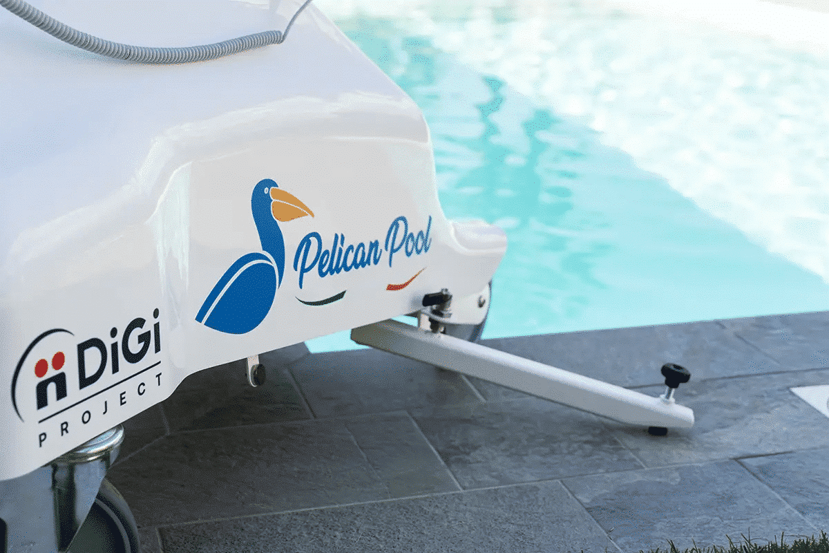 PELICAN POOL es un elevador móvil para piscinas que ofrece autonomía al usuario incluso cuando la piscina no está a nivel cero (con paredes hasta 50 cm de altura).