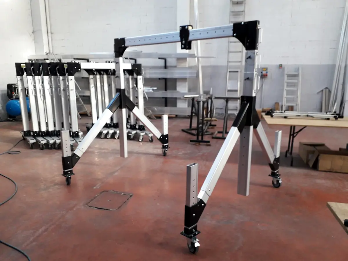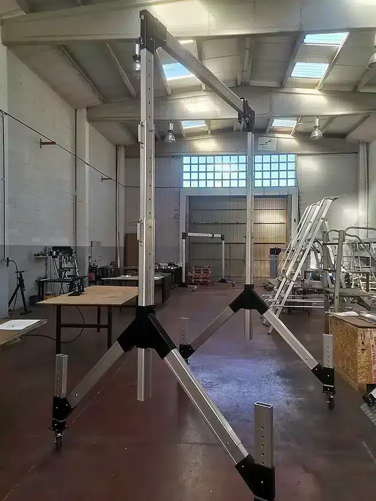 Nuestro pórtico de elevación temporal es un equipo móvil diseñado para asistir en la elevación de cargas y/o personas de manera puntual. Un «puente grúa» portátil que se instala de manera rápida y se puede mover fácilmente.