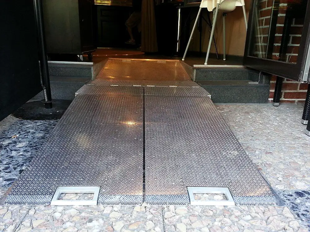Nuestras rampas para sillas de ruedas son una solución sencilla pero efectiva para mejorar el acceso a los edificios por parte de las personas con movilidad reducida en pequeños desniveles de hasta 20 cm (altura de un escalón pequeño).